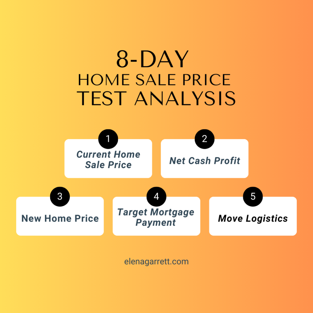 These 3 days will be used to: determine the highest sale price the current home can achieve in 2024, determine the cash left to purchase another property, review the options for getting a low-interest-rate loan, identify what homes are available in the target price range, and review any logistics that may need to be addressed during the sale/purchase/move.