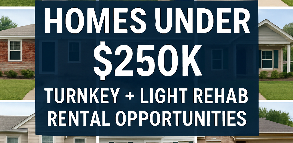 - Homes Under $250k That Make Strong Rental Opportunities (Turnkey + Light Rehab)